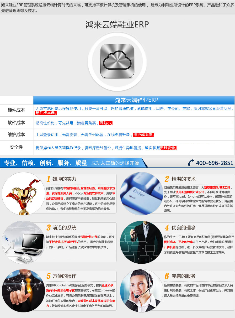 東莞市南城鴻來軟件服務(wù)部,我們主要提供制鞋行業(yè)及其上下游廠商提供各項信息及咨詢服務(wù)廠商 。鴻來軟件在制鞋業(yè)軟件方面先后替上百家客戶,完成計算機化規(guī)劃,經(jīng)過長期的用心經(jīng)營,公司已經(jīng)建立了龐大的客戶基礎(chǔ),獲得眾多客戶支持及肯定。...